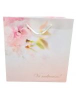 Cutie cu maner pentru prajituri realizata din carton, cu design floral usor diferit pe fata si spate, care poate fi folosita in industria alimentara, cofetarii, dar si in cadrul evenimentelor speciale precum nunta sau botez.