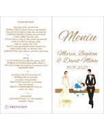 Lista cu invitatii prezenti la nunta si botez, decorata cu miri alaturi de bebelusul lor, foarte utila pentru organizarea oaspetilor in cadrul evenimentului.